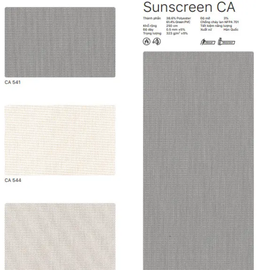 Bộ sưu tập màu của Rèm Roman mã Sunscreen CA